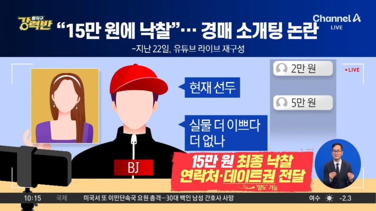 01:40재생중[돌직구 강력반]“15만 원에 낙찰”…경매 소개팅 논란