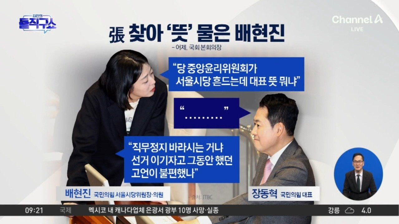재생 0회 | 등록 2026.02.10배현진, 張에 "나와 서울시당 흔드는 뜻 뭐냐" <JTBC> 서울시당 '전두환 사진 게재 주장' 고성국 출석 요구 고성국 "…