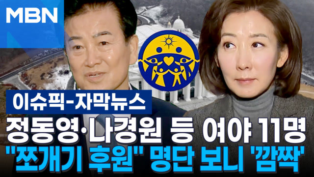 정치권 쪼개기 후원 혐의로 기소된 통일교 산하 단체장이 전·현직 여야 정치인 11명에게 1300만 원을 후원한 것으로 파악됐습니다. 정동영 통일부 장관부터 정세균 전 총리, 나경원 의원과 윤상현 의원 등 여야 핵심 인사가 이름을 올린 것으로 전해졌습니다. Copyright MBN. All rights reserved. 무단 전재, 재배포 및 AI학습 이용 금지