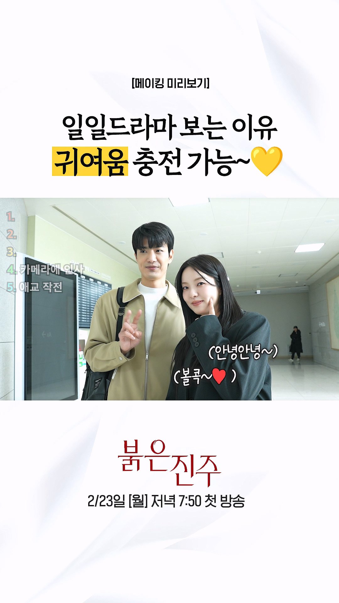 [선공개 메이킹] 일일드라마 보는 이유? 귀여움 충천 가능~ KBS 2TV 2월 23일 (월) 저녁 7시 50분 첫 방송 Copyright ⓒ KBS. All rights reserved. 무단 전재, 재배포 및 이용(AI 학습 포함) 금지