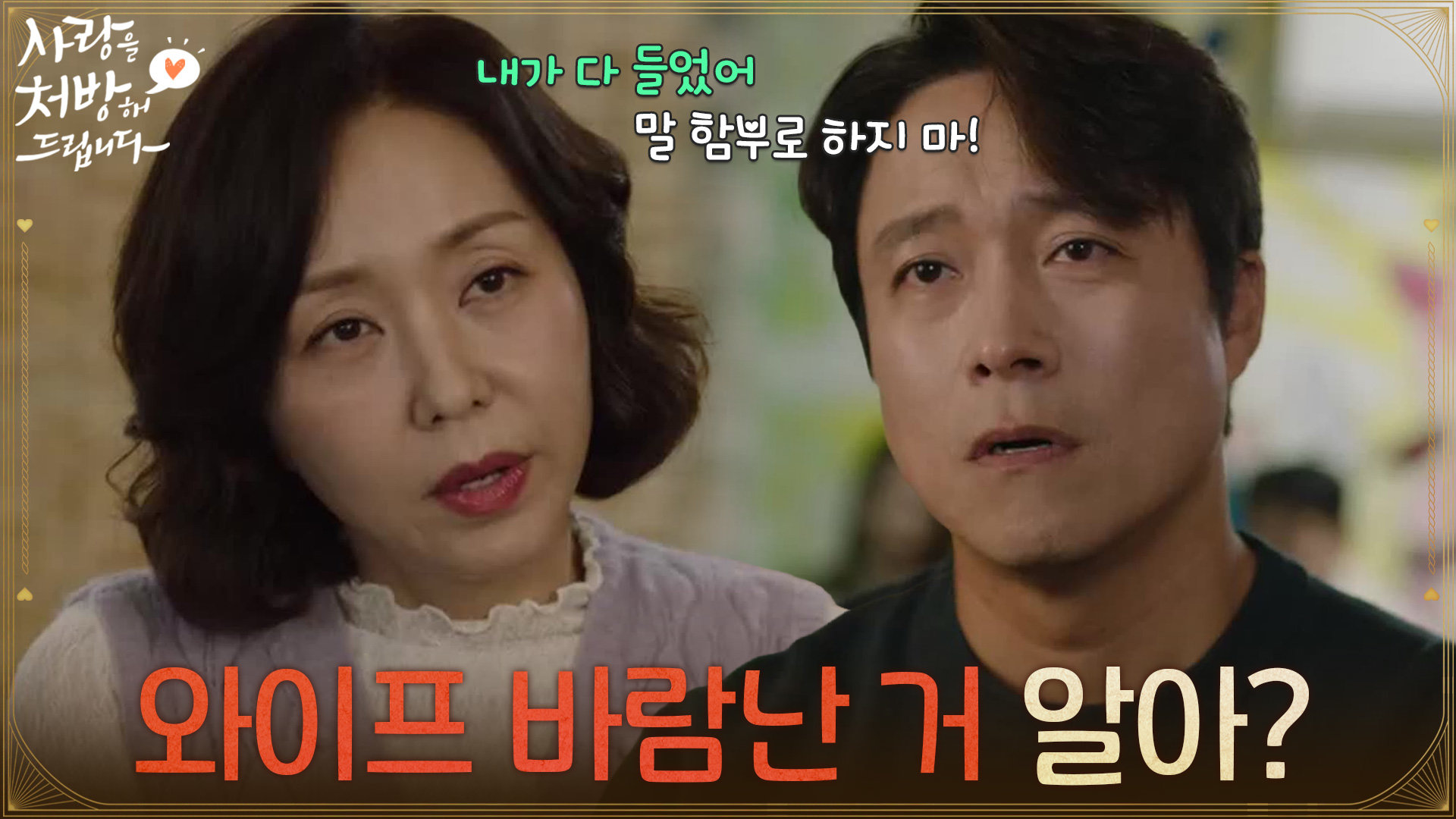 03:01재생중"와이프 바람난 거 알아?"조미령의 이야기를 듣고 믿지 못하는 최대철 [사랑을 처방해 드립니다] | KBS 260215 방송
