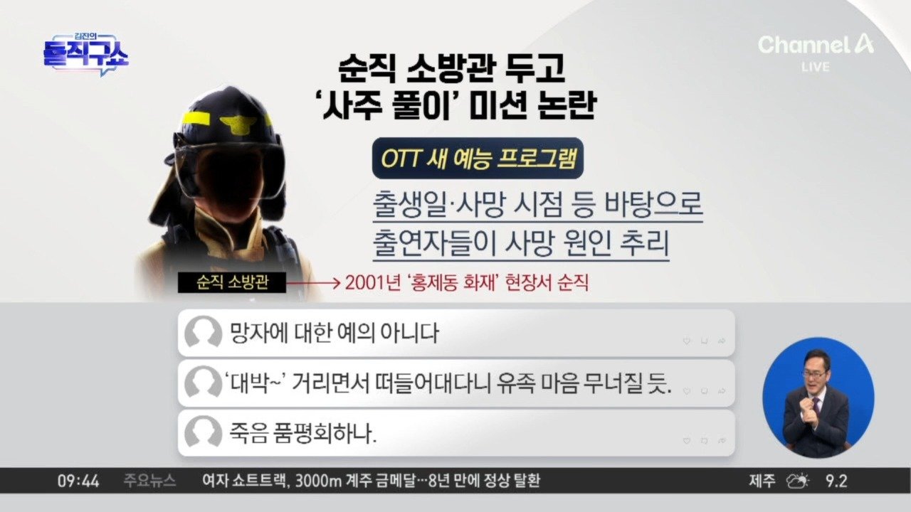 08:00재생중[핫피플]‘박나래 출연’ 예능, 순직 소방관 ‘사인 맞히기’ 미션 논란