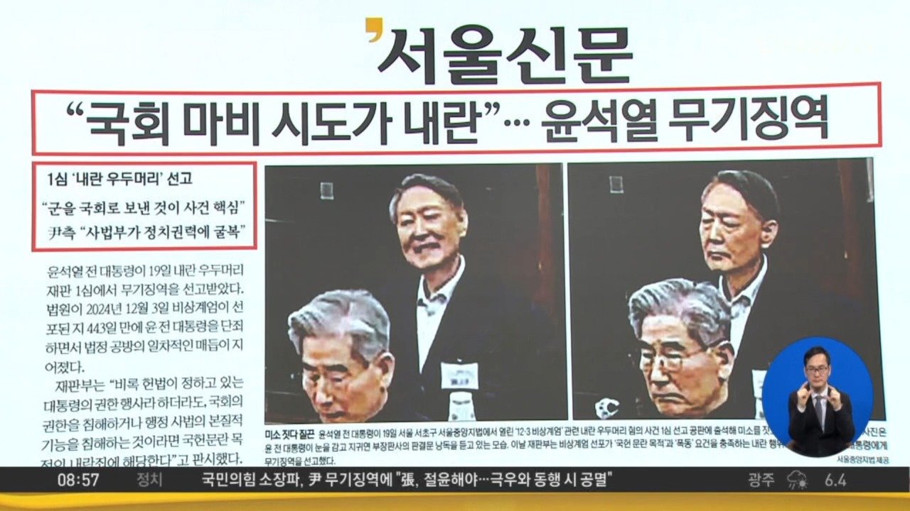 재생 0회 | 등록 2026.02.20<서울> "국회 마비 시도가 내란"… 윤석열 무기징역 <한겨레> 트럼프 결국 이란전 불 댕기나…"이르면 이번 주말 공습 가능…
