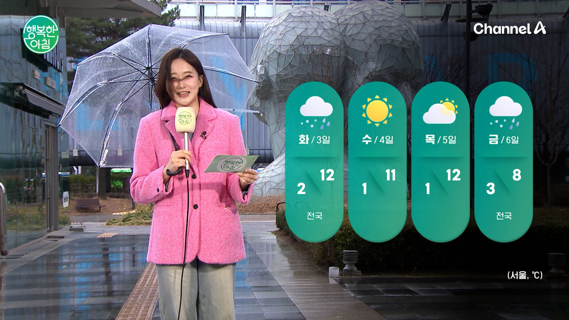 한낮기온 어제보다 떨어져 서울 7도 대전 9도 부산 10도 당분간 아침은 서늘 하고 낮에는 온화한 일교차 큰 날씨가 이어져 전국적으로 강한 바람 활기가 넘치는 '행복한 아침'이 시작됩니다! '행복한 아침' 월~금 아침 7시 30분 방송 Copyright Ⓒ 채널A. All rights reserved. 무단 전재, 재배포 및 AI학습 이용 금지
