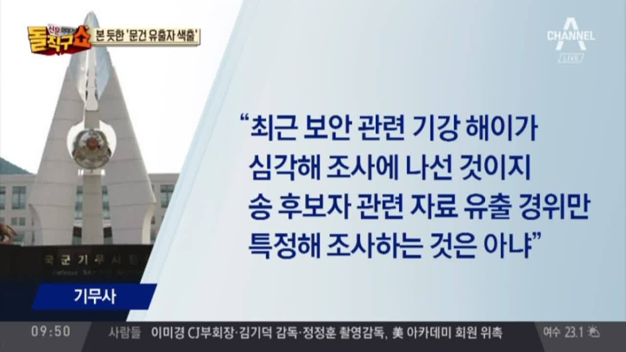 동아 기무사 "송영무 의혹 관련 문건 유출자 색출" 서울 '反송영무 세력' 조직적 기밀유출 의혹 조선 '송영무 의혹' 제보자 색출하겠다는 軍 경향 송영무 청문보고서 '불발'…강경화 전철 밟나 서울 송영무 청문보고서 채택 무산 [2017.6.30방송] 신문이야기 돌직구쇼+ 1068회
